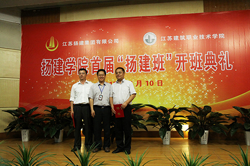 2011年11月10日,集團舉辦與江蘇建筑職業(yè)技術學院校企聯(lián)合辦學儀式,與建院簽訂“揚建集團——江蘇建院”校企合作辦學協(xié)議,設立“揚建學院—揚建班”, 實施“訂單式”人才培養(yǎng),向集團輸入所需應用型專門人才,建立長期的人力資源供需協(xié)作關系。通過“揚建班”的定向培養(yǎng),不斷擴大企業(yè)的影響力,吸引各院校更多品學兼優(yōu)的畢業(yè)生加盟揚建集團,為“打造百年揚建、實現(xiàn)百億揚建”的共同事業(yè)奉獻大家的青春、智慧和汗水。